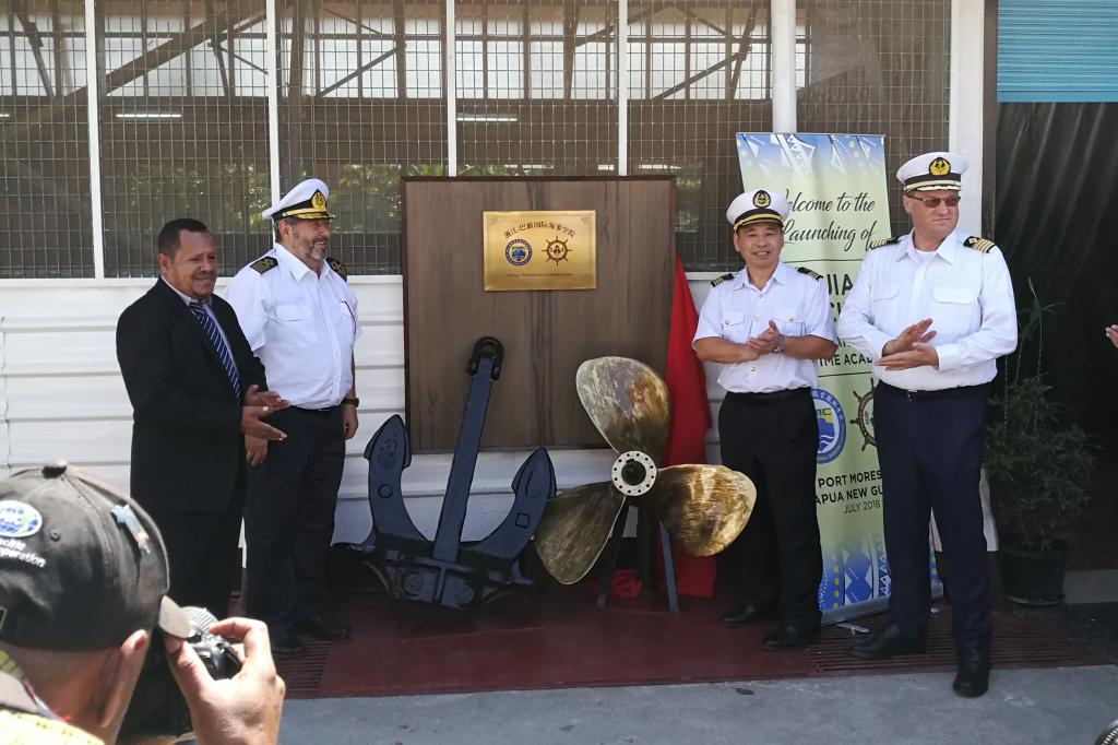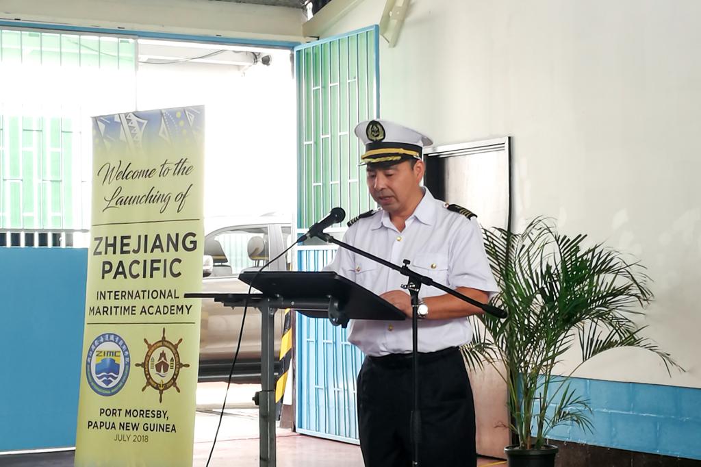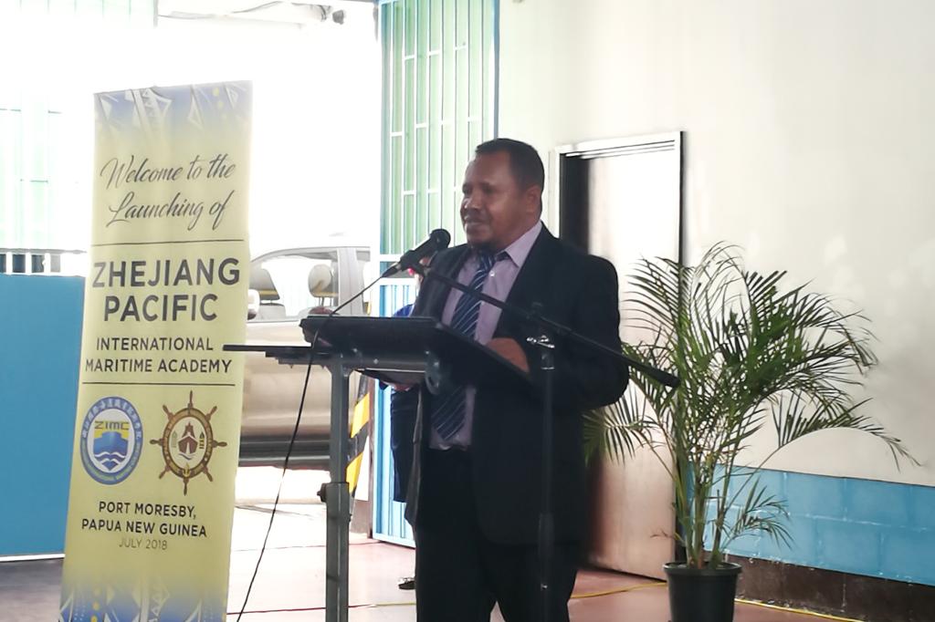 7月3日下午,代表团来到巴布亚新几内亚太平洋海事学院,并就如何建设好浙江-巴新国际海事学院与董事长Gabriel Magyari 、校长Virgil TOANCHINA进行了洽谈。4日早晨,浙江-巴新国际海事学院揭牌仪式在巴布亚新几内亚太平洋海事学院隆重举行。巴新国家议会议员Hon.Lsi Henry Leonard、国家海事局常务副局长Graham Proud船长等官员、海军代表、所罗门群岛海事局局长Tim Harris船长,巴新航运企业、中资企业代表、学校全体教职员工和学生等百余人参加。会上首先奏唱了两国的国歌,播放了舟山和双方学校的视频介绍,之后,巴新国家议会议员Hon.Lsi Henry Leonard、双方学校代表分别讲话,最后,举行了浙江-巴新国际海事学揭牌仪式,标志着我校国际海事教育资源输出正式拉开了序幕。
