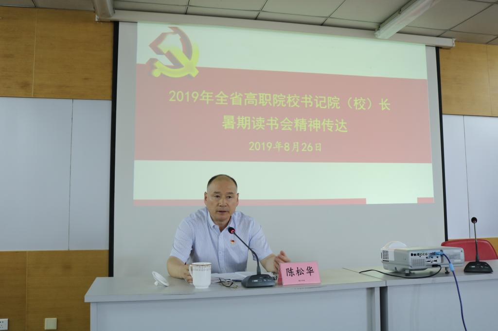 近日,学校分别召开了党委会和专题学习会,传达学习2019年全省高职院校书记校长(院长)暑期读书会精神,全体校领导、中层干部、各党总支(直属支部)书记、副书记、委员、二级党支部书记参加了会议。