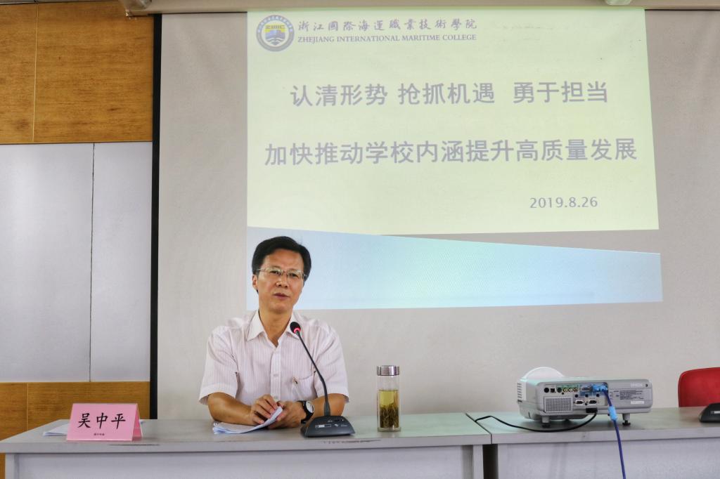 培训期间,学校党委书记陈松华传达2019年全省高职院校书记院(校)长暑期读书会精神;学校党委副书记、校长吴中平给参训学员作《认清形势 抢抓机遇 勇于担当 加快推动学校内涵提升高质量发展》学校工作新学期工作部署;
