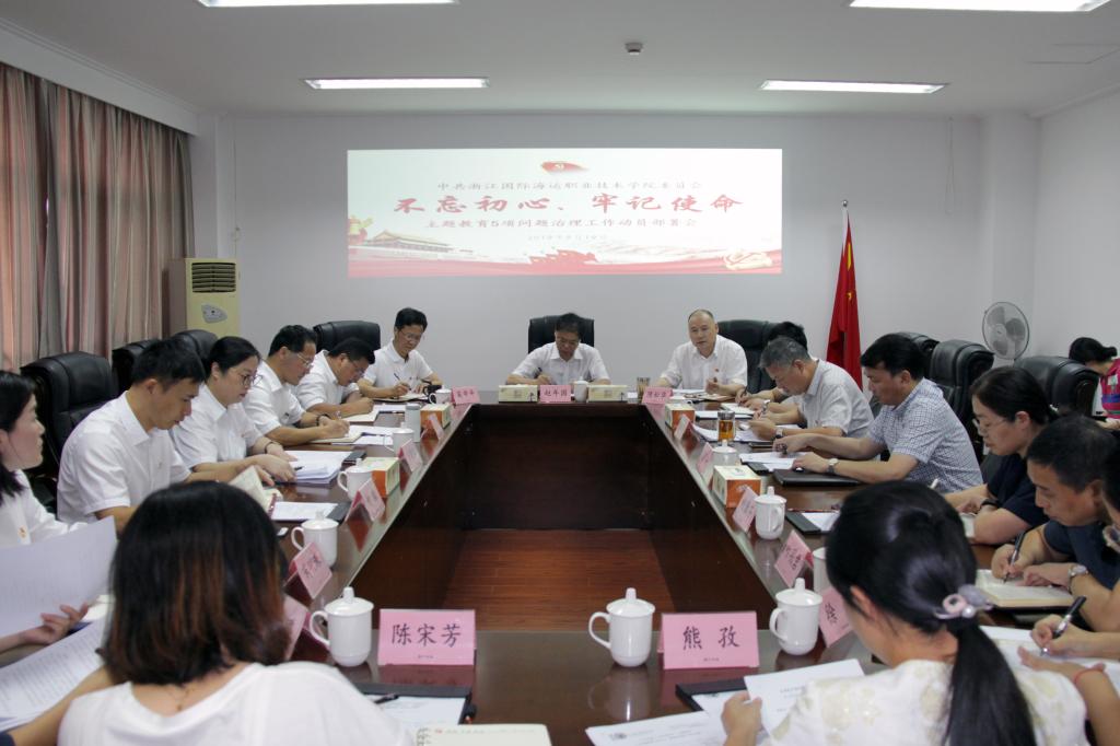 教务处处长叶明君、组织部副部长李晓璐、学工部部长芮明珠、宣传部副部长熊孜和团委书记徐盈分别就主题教育5项问题治理工作:人才培养方案的完善和落实问题、辅导员和班主任队伍建设的制度机制问题、基层党组织换届问题、新媒体管理问题和学生社团的规范化管理问题的具体表现和治理措施进行汇报,分管校领导陈定樑、孔志光、孔志华分别作表态发言并对下一步整改工作进行布置。