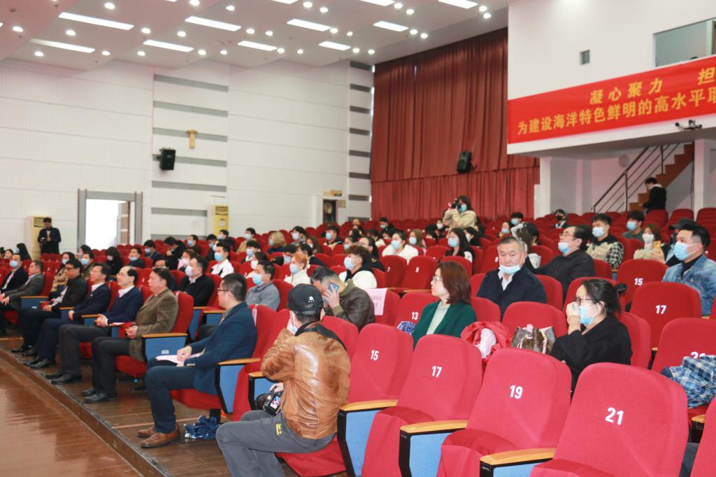 3月24日,舟山海洋传媒人才培养基地成立暨庆祝建党100周年·青年&大学生短视频文化启动仪式在学校董浩云图书馆四楼报告厅成功举行。中共舟山市委宣传部副部长朱永华,舟山市文联党组书记张辉,共青团舟山市委副书记崔俊杰,舟山日报社副总编辑、舟山市电影电视艺术家协会主席吴崇杰,我校党委副书记、校长吴中平,党委委员、副校长曹志斌,党委委员、副校长夏志刚,以及部分市级机关相关部门领导和舟山市电影电视艺术家协会理事以上艺术家、企业家和学校师生代表共150余人参加。启动仪式由党委委员、副校长夏志刚主持。