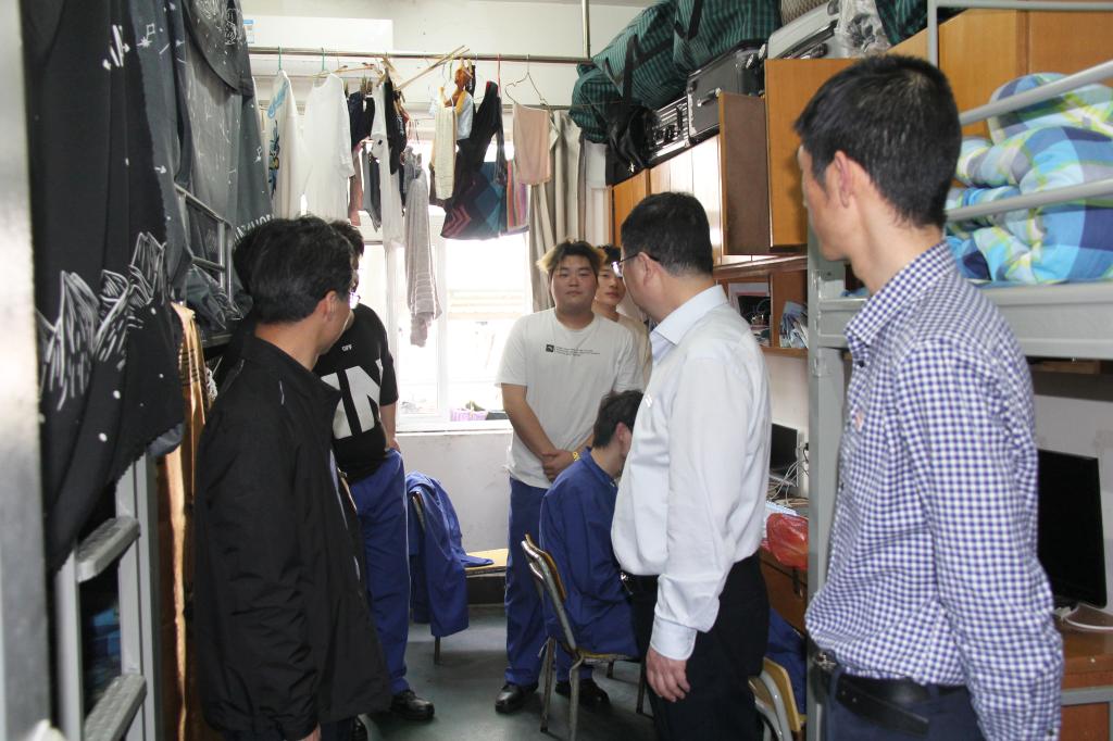 在学生宿舍区域,校领导认真检查了寝室用电安全情况,详细询问了宿舍管理人员关于假期留校学生的思想、生活等相关情况,亲切与学生进行了交流,叮嘱同学们要注意用电安全、出行安全,规律作息,培养健康的生活习惯。校领导一行还重点检查了商贸区和学生食堂就餐环境和消防设备,切实保障假期留校学生的生活。