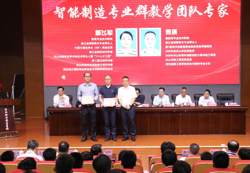 签约仪式上,吴中平校长为浙江省优秀技能大师工作室领办人、舟山技师学院袁梁红、卢相安两位老师颁发聘书,担任我校智能控制技术、机电一体化、工业机器人等专业技能专家。我校郭飞军教授、何琪副教授也被舟山技师学院聘为智能制造专业群教学团队专家。(招就办)