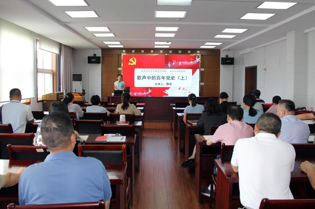 “我还是从前那个少年,初心从未有改变,百年只不过是考验,美好生活目标不断实现……”机关党总支书记熊孜将音乐艺术与党课有机融合,以建党百年版MV《少年》为切入点,以史串歌,以歌叙史,声情并茂地为大家上了一堂音乐党课《歌声中的百年党史(上)》。从《国际歌》与《共产党宣言》、《三大纪律八项注意》和中国工农红军,到《娘子军连歌》和琼崖纵队、《黄河大合唱》与抗日战争,这一曲曲红色经典弦律,在党的百年奋斗征程中发挥了巨大作用。党员们感慨地说:“没想到这些熟悉的歌声背后,还有这么多不为人知的动人党史故事!”