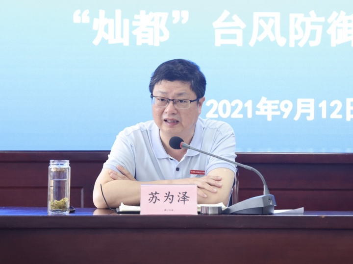 9月12日下午,校党委书记苏为泽主持召开 “灿都”台风防御工作会议,校领导和相关部门负责人参加会议。学生处、保卫处、教务处、后勤处、文体部及各二级学院主要负责人汇报防御“灿都”台风工作准备情况。