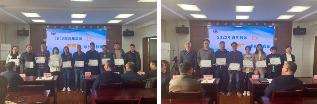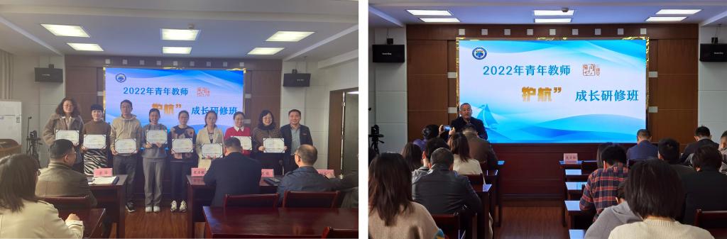 本次“护航”成长研修班采用校本培训与在线学习、理论授课与实践指导相结合的方式,包含线上自学、集体研修、教学实践、微格演练、展示交流等五个环节,对每个研习环节设置专题实践作业并进行过程性考核,强调对青年教师的课程整体设计、课堂单元设计、教学片段等教师教学能力的培训。经过综合测评,结营仪式上为达到培训考核要求给予结业的44名教师颁发了结业证书。