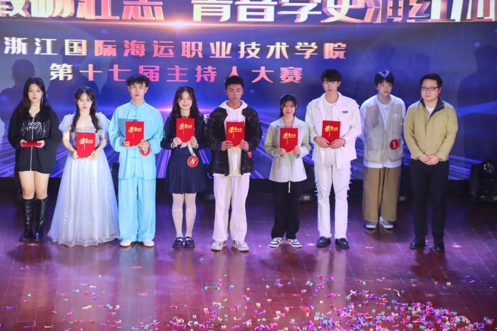 航海工程学院刘贤、王浩露、丁婉羿,海洋装备工程学院葛开福,港口管理学院严羽洁、应柳冰,海洋旅游学院蒋涵冰、臧佳晟、金豪康,国际教育学院林盈利获得“校十佳主持人”荣誉。