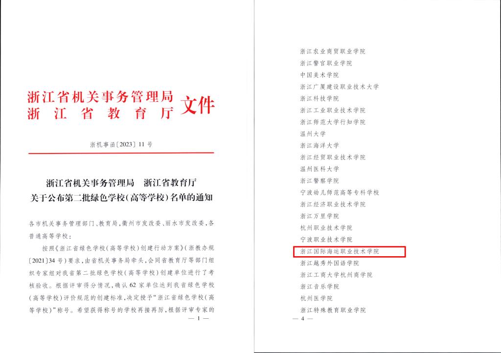 近日,浙江省机关事务管理局、浙江省教育厅下发了《关于公布第二批绿色学校(高等学校)名单的通知》,学校成功获评“浙江省绿色学校(高等学校)”称号。