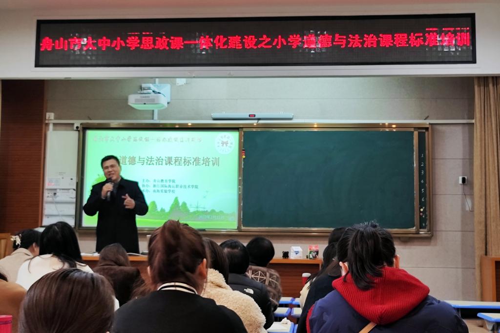 对于本次研学活动,舟山市大中小学思政课一体化基地秘书长、学校马克思主义学院院长郑忠义老师用“导向明确,通俗易懂;严谨规范,生动活泼”进行了概括。他认为,这次新课标解读,站在新时代高度,达到了集体备课与研学的目的;两节公开课演示体现了年轻教师核心素养与综合实力,案例精当,启发生动,师生互动热烈,学生积极性高、参与度高,课堂效果非常理想,符合当前小学阶段年龄段和社会生活新情况的特点。他强调,共同推进大中小学思政课一体化共同体建设,要始终把坚持习近平新时代中国特色社会主义思想进教材、进课堂、进学生头脑放在重中之重的地位;坚持遵循教育规律、思想政治工作规律、学生成长规律,充分发挥思政课与德育课的政治引领和价值引领作用。他特别建议,大中小学思政教师要主动走出课堂,走入日新月异的社会进程中,时刻关注时政要闻和社会热点,用改革开放以来特别是新时代十年来取得的巨大成就,用生动而鲜活的身边事激励学生、引导学生、助力学生,通过实践教学和活动体验,把理想信念、红色文化、优秀传统文化作为一以贯之的育人主题,增强“四个自信”,提升各学段学生的政治素质和综合素养,保持大中小学思政工作的连贯性和统一性,创造海岛教育现代化的育人新成果。(马克思主义学院)