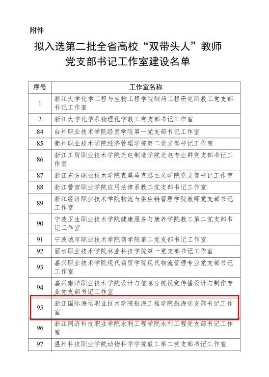 党旗引领风帆劲、砥砺前行谱新篇。近日,航海工程学院航海党支部“双带头人”工作室喜获浙江省第二批党建“双创”培育创建项目,这也是学院继浙江省高校党建“样板党支部”落地后,又一项党建标志性成果。