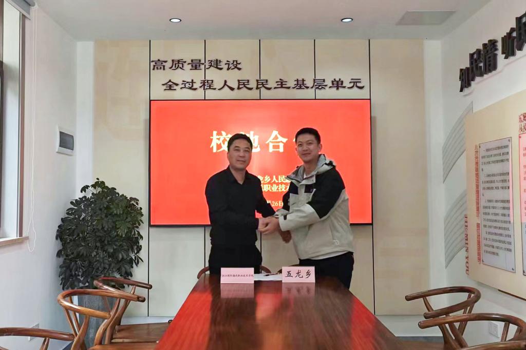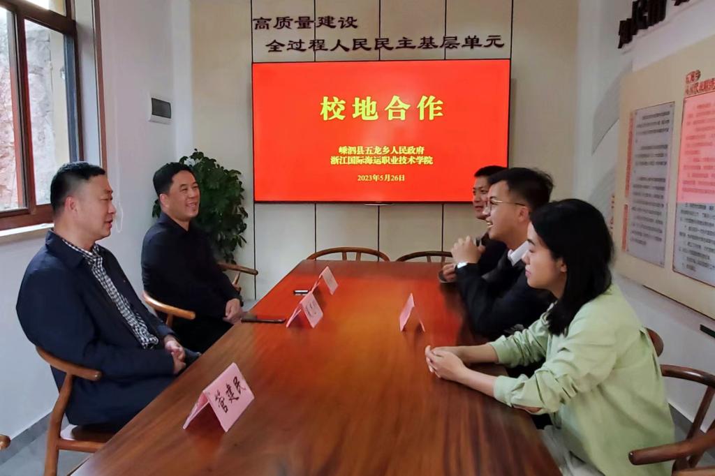 5月26日上午,我校和嵊泗县五龙乡人民政府举行了共建“乡村职业学院”合作签约授牌仪式。校党委委员、副校长夏志刚,海洋旅游学院院长俞海平、办公室主任管建民,五龙乡党委副书记戴嘉、副乡长徐斌,以及乡党委委员白霓衣等双方相关部门负责人参加仪式。