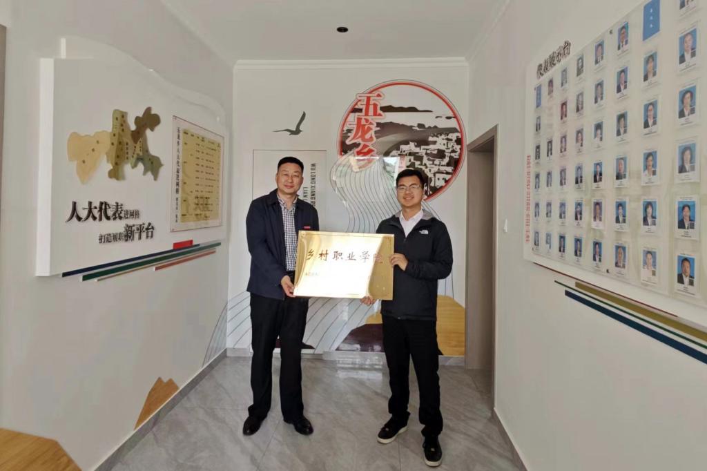 仪式上,夏志刚副校长为五龙乡党委副书记戴嘉授牌,海洋旅游学院院长俞海平与副乡长徐斌签署协议。