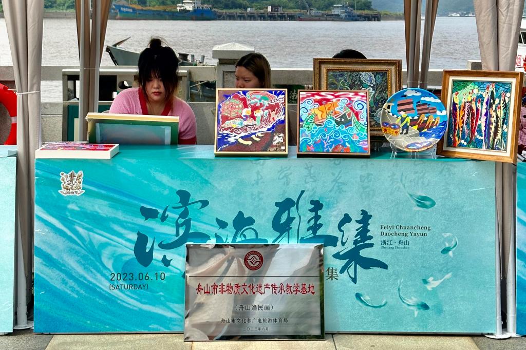 我校参加2023年“文化和自然遗产日”系列活动并被授予舟山市非物质文化遗产传承教学基地(舟山渔民画)