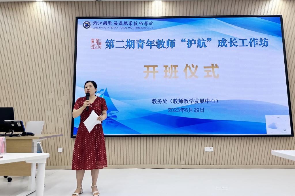 为全面贯彻落实习近平总书记关于高校教师队伍建设的重要指示精神,深入推进师资队伍建设,拓宽教师职业教育教学改革与创新的思路和方法,提升教师教学的业务素质和能力,6月29日,学校第二期青年教师“护航”成长工作坊开班仪式暨集中研修在学校图书馆四楼教师发展中心智慧教学空间411顺利举行。校党委副书记孔志光,宁波财经学院教师发展中心主任王志军教授、教务处处长郑燕华,宁波财经学院李晓蕾教授、林蔚然老师,各教学单位相关负责人及“护航”成长工作坊全体参训学员、近两年新入职青年教师60余人参加了本次开班仪式及集中研修。