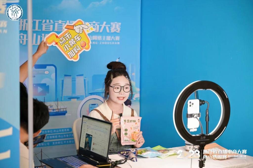 直播汇人才,电商促共富。为进一步推动电商高质量发展,发挥直播在我市电商领域拓市场、促消费、稳就业、惠民生、强合作等方面的重要作用,由舟山市商务局主办,舟山市委两新工委、舟山市市场监督管理局、舟山市人力资源和社会保障局、舟山市电子商务公共服务中心、舟山市直播电商共富会协办,舟山米巢文化传播有限公司、舟山智媒传播有限公司承办的2023浙江省直播电商大赛舟山选拔赛暨舟山网络主播大赛,于8月18日启动,经过初赛选拔、指导培训,我校2021级商务英语专业1班的郑奕楠成功杀入最后的总决赛。