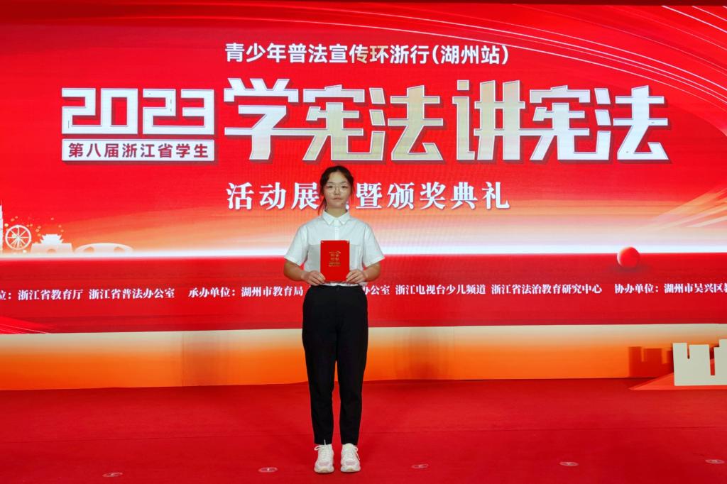 916-17日,第八届浙江省学生“学宪法 讲宪法”活动省级决赛在湖州举行。经过激烈角逐,我校由徐徐老师指导的海洋旅游学院食品检验检测技术专业学生金栋婷获该项赛事素养竞赛高校组二等奖。
