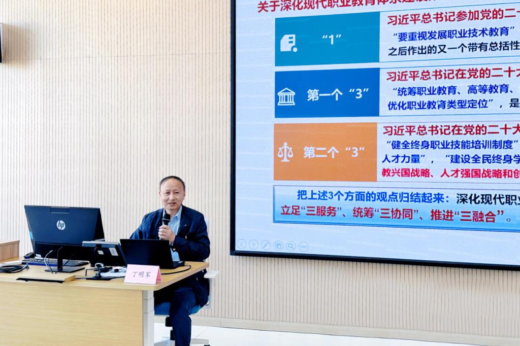 在专家主旨报告环节,丁明军教授、丁振国教授分别作了题为《关于“双高”验收与建设的若干思考》《从实施者视角看高水平专业群建设》的专题报告。两位专家结合自身丰富的工作经验,从验收材料梳理、建设成效规整、典型案例分享等进行详细讲解。报告紧密结合当下职业教育发展的宏观背景和政策环境,站位前沿、内容丰富、经验可鉴,对各院校下一步“双高”验收工作的开展,具有很强的指导意义。