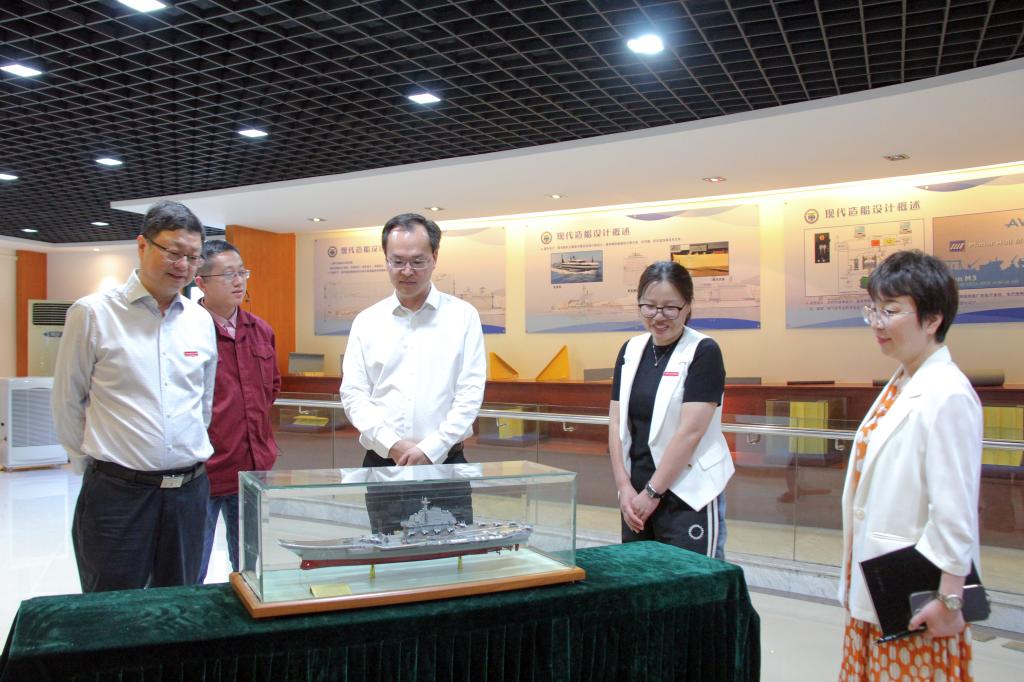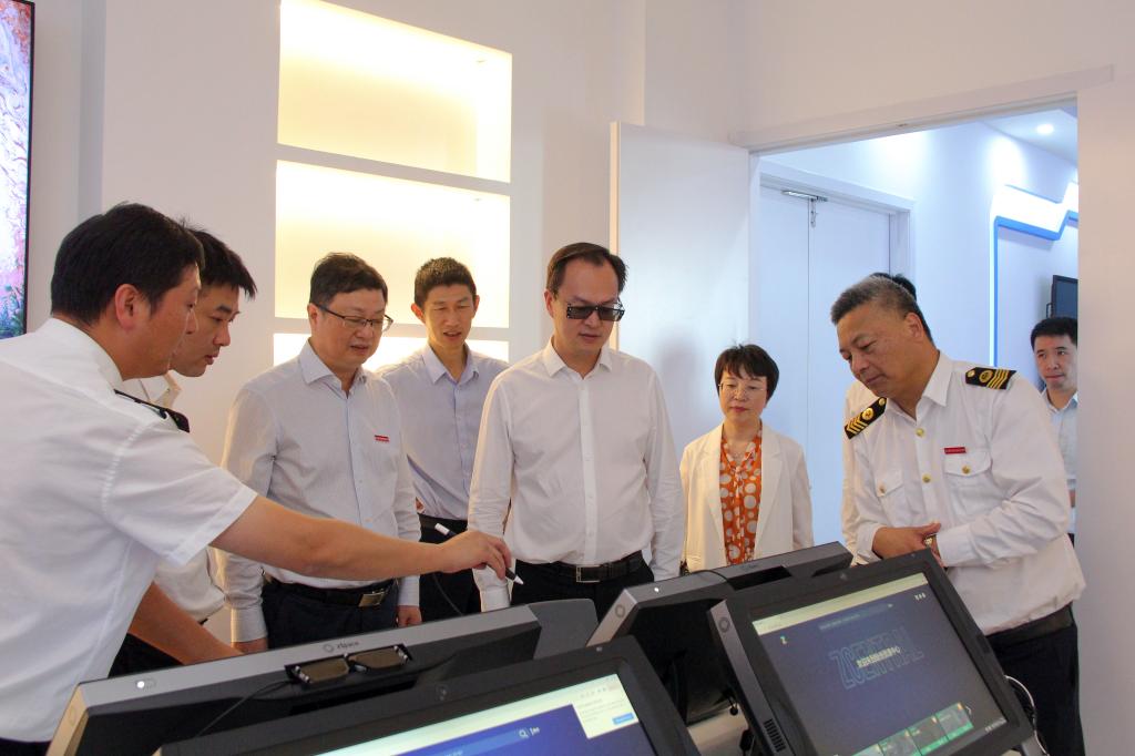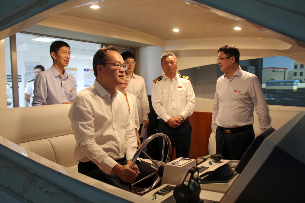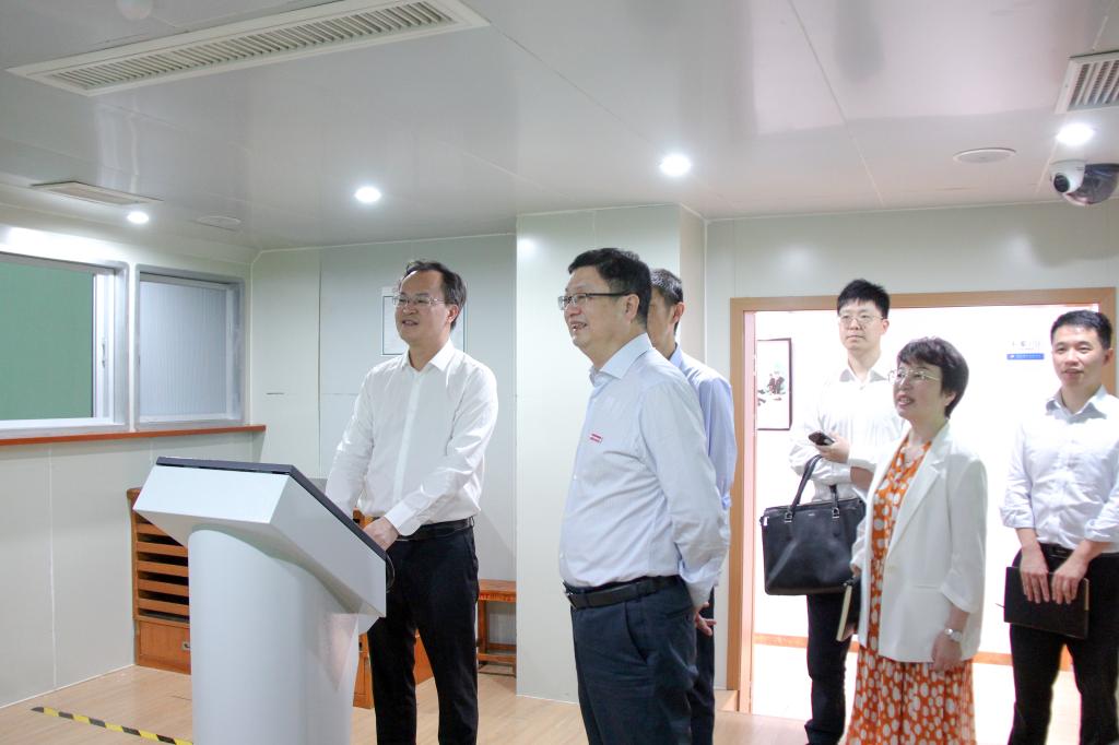刘中华一行参观了学校航海模拟器、游艇模拟器、轮机模拟器、国家级航海虚拟仿真中心、全国舰船科普教育基地船舶知识馆、渔民画工作室、省教育系统廉洁教育基地东海阁等地,深入了解学校党建、人才培养、内涵建设、思想政治建设、意识形态等方面工作开展情况。