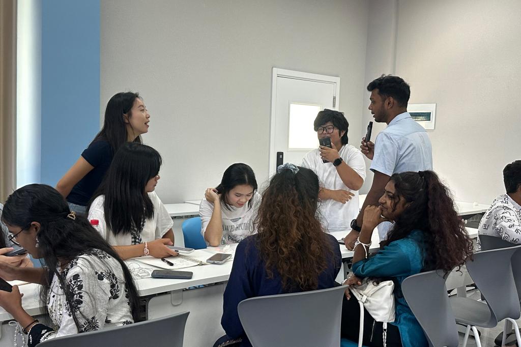 活动在轻松愉快的破冰游戏“我们的‘一天’”(A Day in Our Life)中拉开帷幕。学生们通过抽取“数字盲盒”随机配对,迅速消除了初次见面的陌生感。在后续的相互访谈中,中马搭档们用英语热烈交流,分享各自典型的周末生活,从早餐的味蕾体验到傍晚的休闲方式,日常生活的细节成为打开彼此文化窗口的第一把钥匙。随后的分享环节更是妙趣横生,中国学生用中文向同胞介绍马来西亚搭档的“茶摊”社交,马来西亚学生则用马来语描述中国搭档的“广场舞”见闻,这种“代言人”式的分享不仅锻炼了沟通能力,更让两国文化在转述与聆听中产生了奇妙的共鸣。