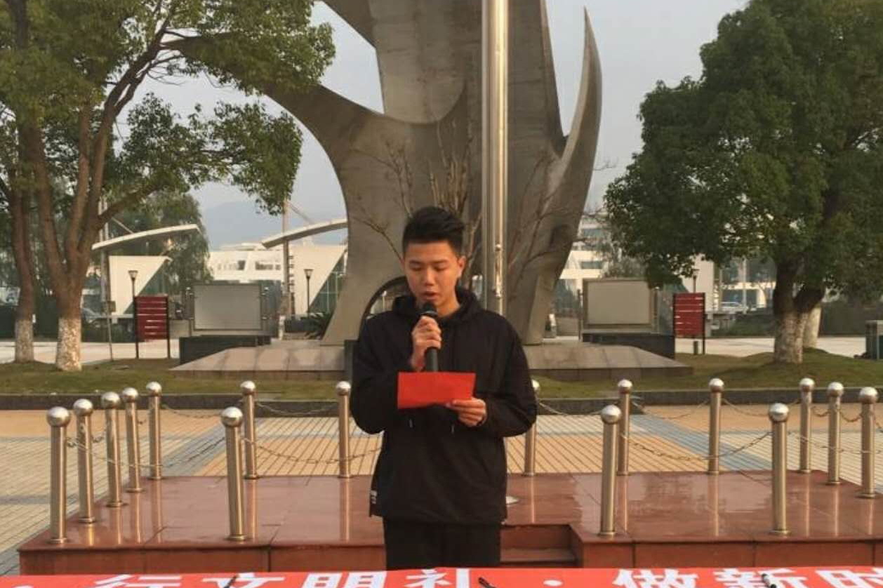 仪式上,国际教育学院分团委学生会主席蔡沅达宣读倡议书,倡议同学们积极学习十九大精神,做有理想、有追求、有担当、有责任、有本领、有胆略的新时代好青年。全体同学轮流在文明公约横幅上签名,表达了从自身做起的决心。学院党支部副书记周静向全体同学介绍了此次活动的背景和内容,要求各级团学干部在“庆十九大·行文明礼·做新时代好青年”主题教育活动中发挥好模范带头作用。