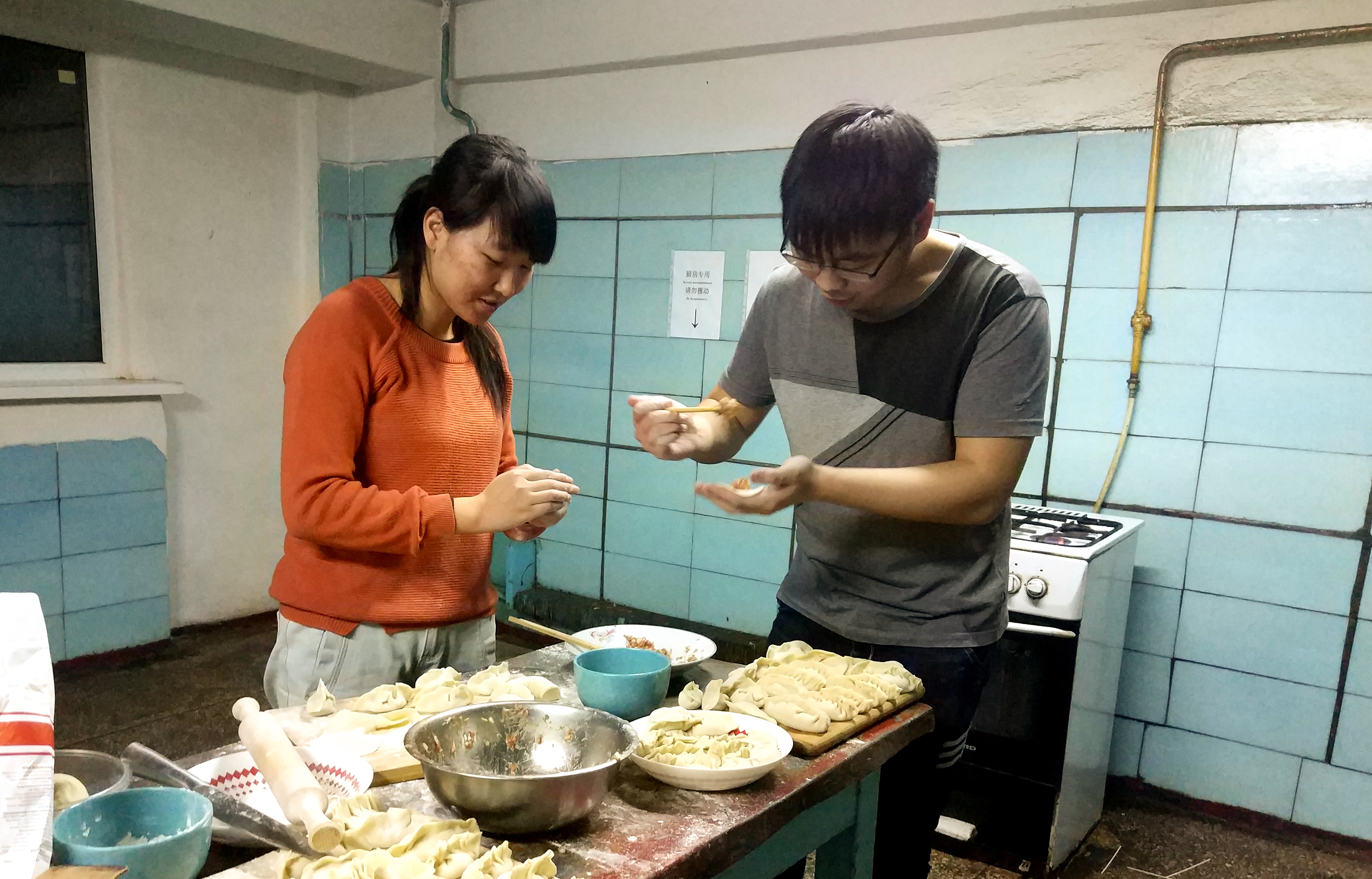为丰富在乌留学生的留学生活,促进同学间的友谊,12月22日下午,海运留学生联合会组织留学生们开展了“迎冬至,包饺子”活动。同学们积极参与,分工合作。剁饺子馅、擀饺子皮、包饺子、煮饺子,整个活动过程充满欢声笑语,其乐融融。当一碗碗热腾腾、香味四溢的饺子端上饭桌时,大家都忘却了冬日的寒冷。