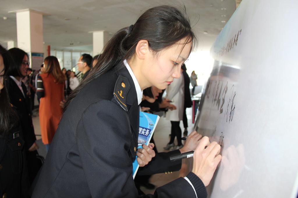 参加开幕式的师生们共同在“书香致远,阅享人生”的主题墙上签名,积极响应学校全民阅读,共建书香校园的倡议。