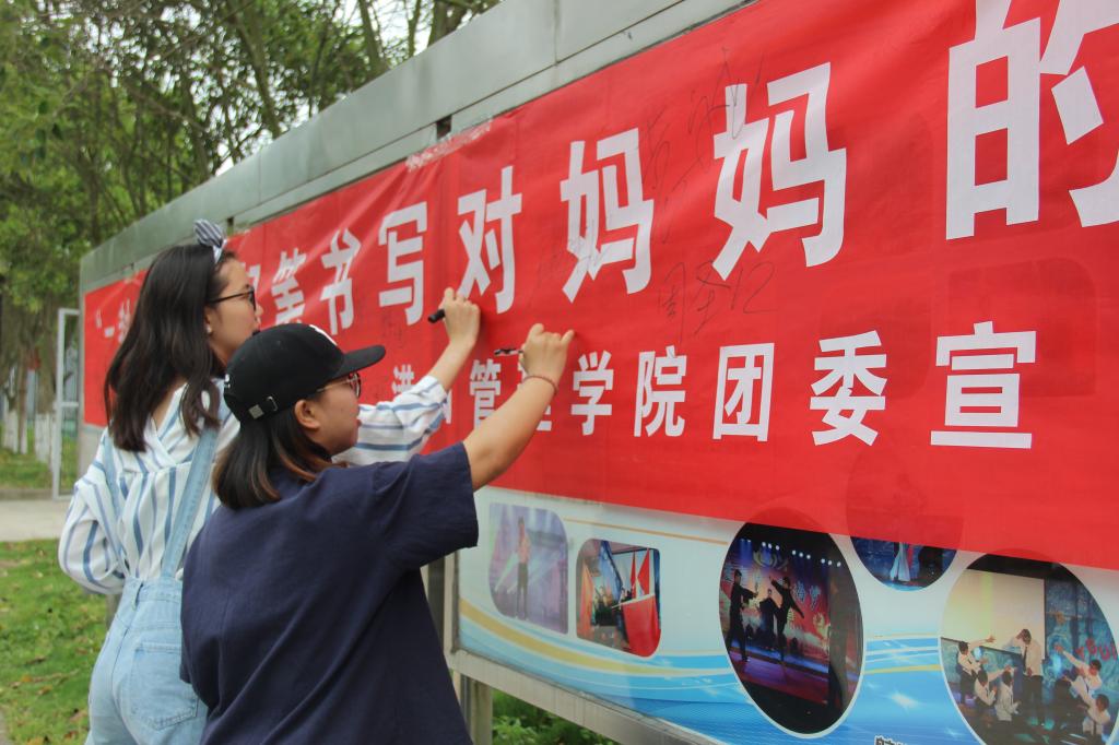 5月13日中午,港口管理学院团委在学校篮球场举办“拾起笔书写对妈妈的爱”母亲节主题活动。