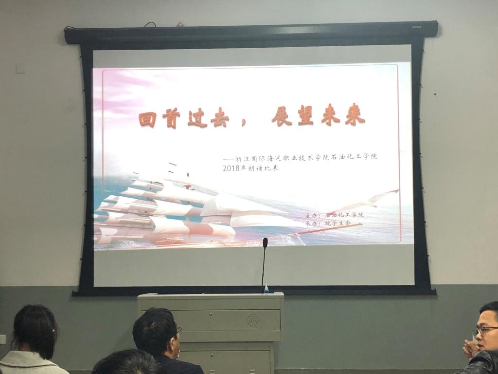 11月28日晚,石油化工学院在岱山校区阶梯教室举办了2018年“蓬莱杯”朗诵大赛,大赛主题为“回首过去,展望未来”。