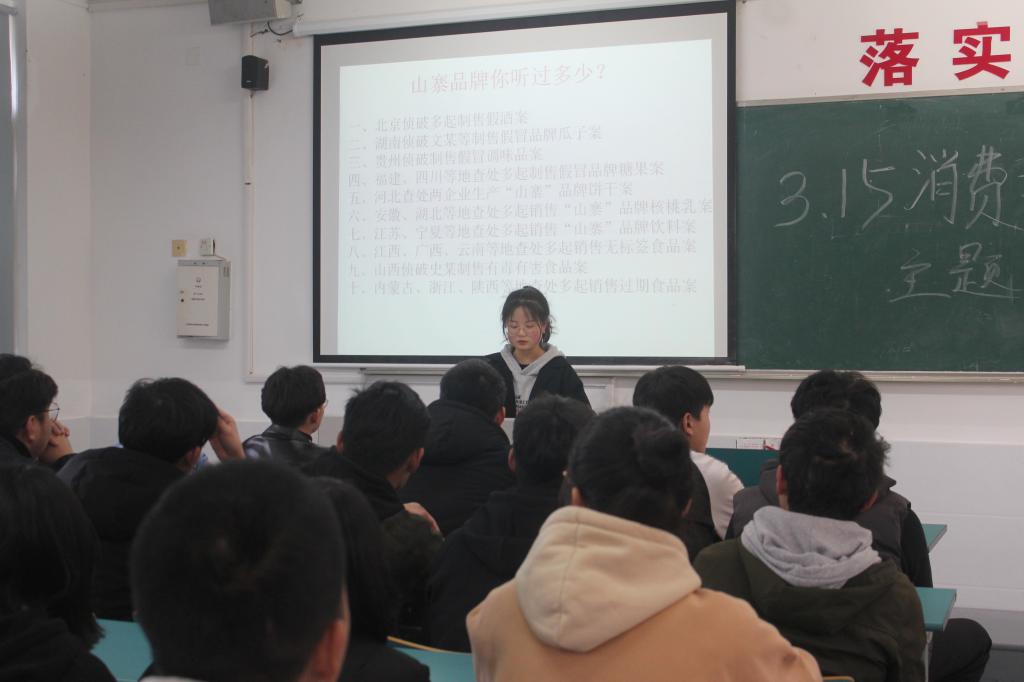 活动以“宣传、教育、维权”为主题,通过学习《中华人民共和国刑法》针对“第一百四十条生产者、销售者在产品中掺杂、掺假,以假充真,以次充好或者以不合格产品冒充合格产品”的法律法规并展开讨论。同学们积极发言,分享自己身边的消费维权事件,气氛热烈。活动还设置了“寻找爆料王”知识抢答竞赛环节,通过互动,同学们提高了对假冒伪劣产品的认识和警惕性,也增强了诚信销售、理性消费和依法维权意识。(图文/林芷伊)