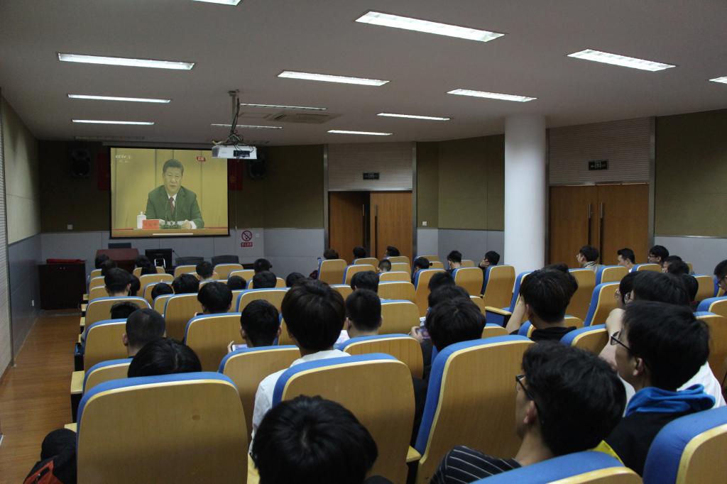 4月30日上午,纪念五四运动100周年大会在人民大会堂隆重举行。船舶工程学院团委组织留校学生在万邦厅通过直播收看了本次大会,第一时间学习了中共中央总书记、国家主席、中央军委主席习近平在大会的重要讲话。