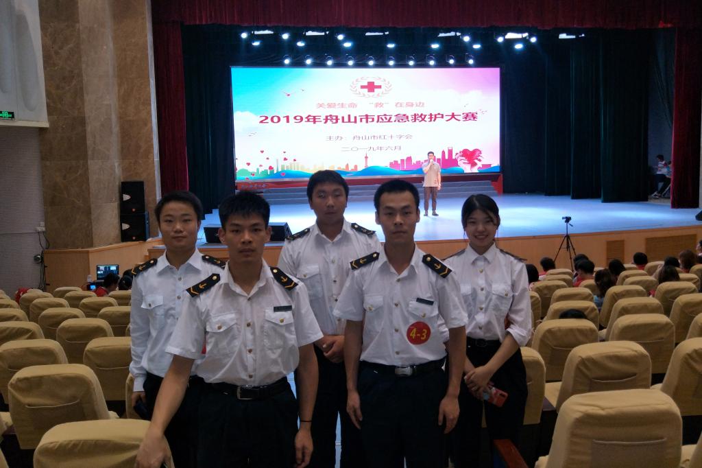 6月19日,在浙江海洋大学举行的2019年“舟山市红十字应急救护大赛”中,我校徐赛飞同学从众多选手中脱颖而出,荣获心肺复苏赛项第二名。我校获团体优秀奖。廖克同学的演讲《红十字,我心中的感动》朝气蓬勃、激情昂扬,极具感染力,也赢得了听众和评委的一致好评。