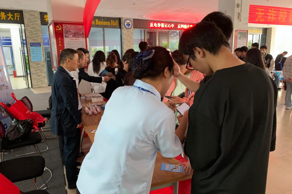 5月17日下午,学校联合舟山市公安局新城分局、新城管委会南海社区和建设银行舟山分行,在学校图书馆一楼大厅开展了“无诈校园,你我同行”签名和宣传教育活动。