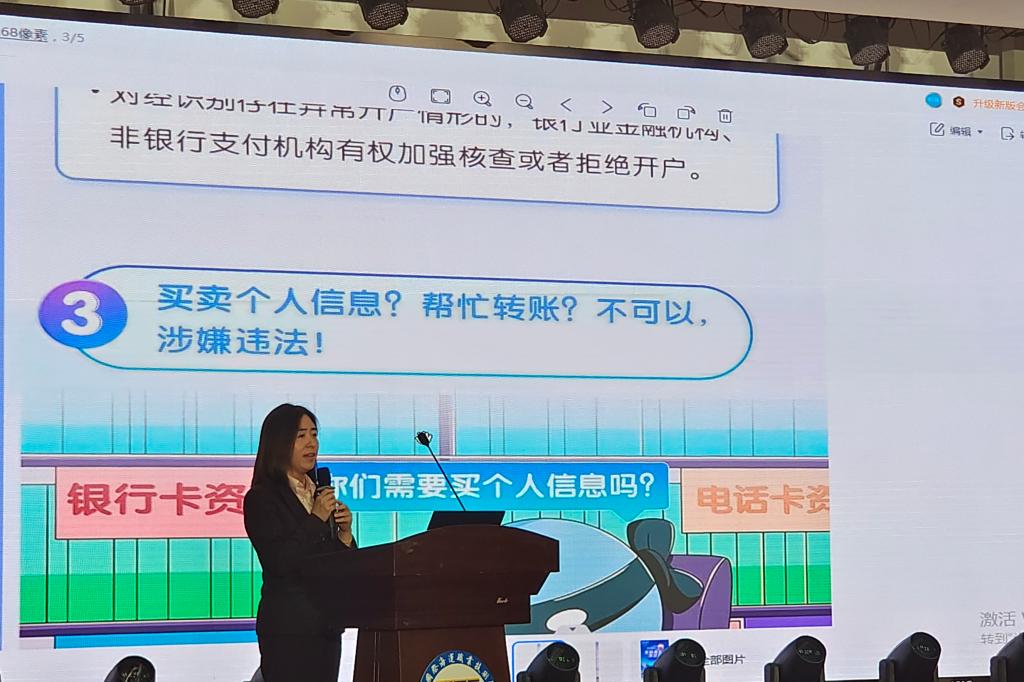 谢乐警官深入浅出地从何为电信网络诈骗、目前电信网络诈骗趋势、常见诈骗类型和防骗秘籍等4个方面用案例提醒同学们在日常生活中要擦亮眼睛,不要贪心,消除侥幸心理,面对不法分子的诱骗做到不理睬,切实增强自身的识别和防范能力。吕霄总经理从学生兼职办卡的常见陷阱、买卖银行卡的危害和惩戒措施等维度告知同学们要合理使用银行账户,拒绝非法买卖银行卡,切勿因贪图蝇头小利而沦为犯罪分子的“帮凶”。为增加与在座同学们的互动性,讲座还安排了有奖问答活动,同学们积极参与互动,不仅对讲座的知识内容进一步回顾,还让同学们对反诈防骗有更加深入的认识。