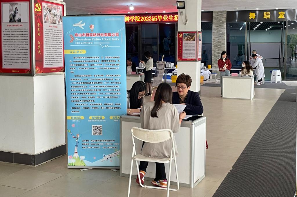此次招聘会面向海洋旅游学院2023届毕业生举行,吸引了舟山旅游客车运输有限公司、中信银行舟山分行、招商银行舟山分行、欧派橱柜、高佳庄餐饮管理有限公司、舟山假日国旅等舟山企业入驻参会,涵盖旅行社、银行、餐饮、酒店、电子商务、客运服务等多个行业,为求职学生搭建了高质量、精准的就业平台。(招就办、海洋旅游学院)