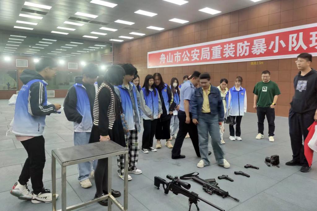 为丰富社团学生的校园生活,加强和谐警民的关系建设,5月24日下午,学校保卫工作部联合舟山市公安局政保(反恐)大队和社团学生一行20余人赴舟山市特警支队训练基地参观学习。