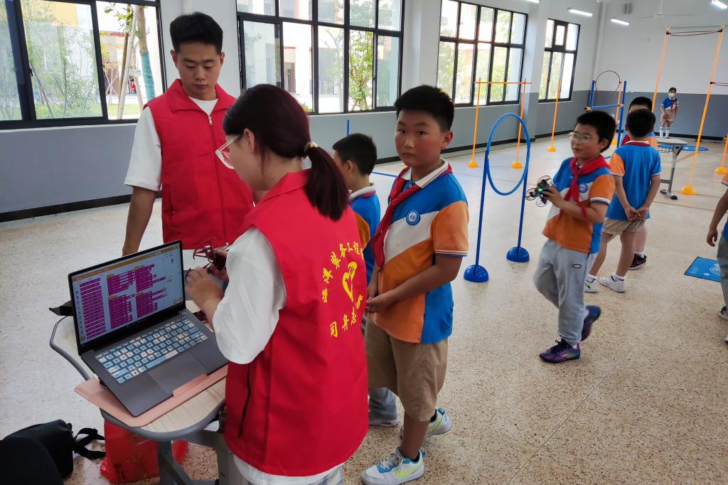 迎六一助“双减”,为了进一步激发青少年科技探索的兴趣,播下职业报国、科技强国的种子,5月29日下午,海洋装备工程学院党员教师卓宏明带领无人机社团“海运之翼”无人机服务队的志愿者们,赴舟山第一小学北校区“送教上门”开展了无人机公益科普活动,并对参加全国青少年无人机大赛浙江省赛的小朋友们进行了指导。