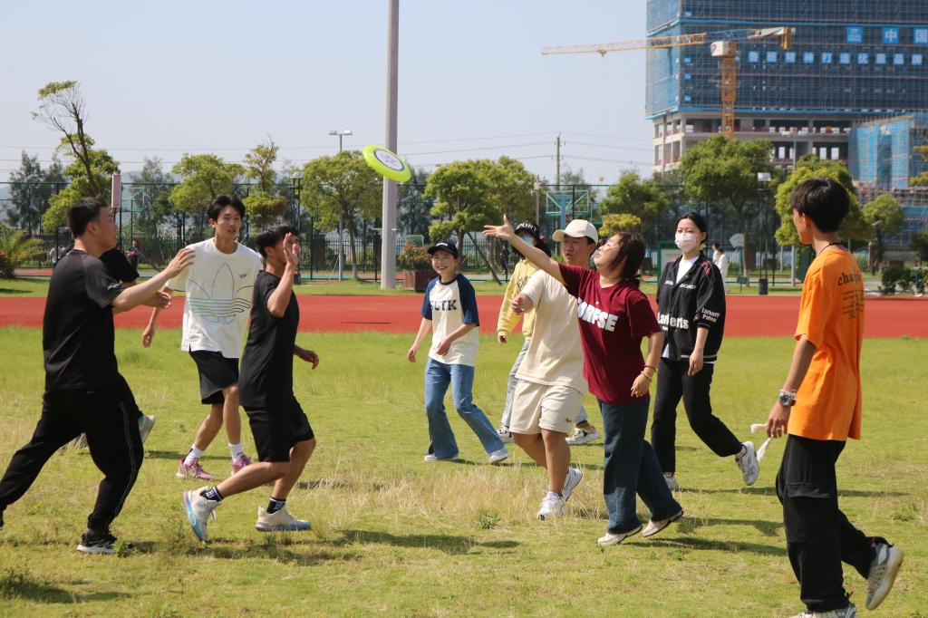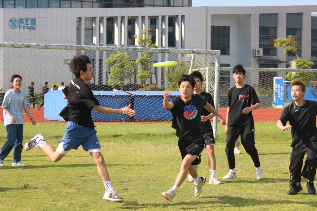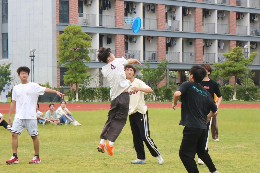 飞盘运动融合了足球、篮球与橄榄球规则特点,兼具休闲性、竞技性和观赏性。本次比赛设为团体赛,共22支队伍,每支队伍组成由五男两女,一共有154位学生参加。5月23日,比赛于岱山校区的操场拉开帷幕。“传盘、起跳、抓盘......”场上的选手们在绿茵草地上穿梭奔跑、默契配合,展示了飞盘运动的魅力,弘扬着“盘不落地,永不抛弃”的精神。