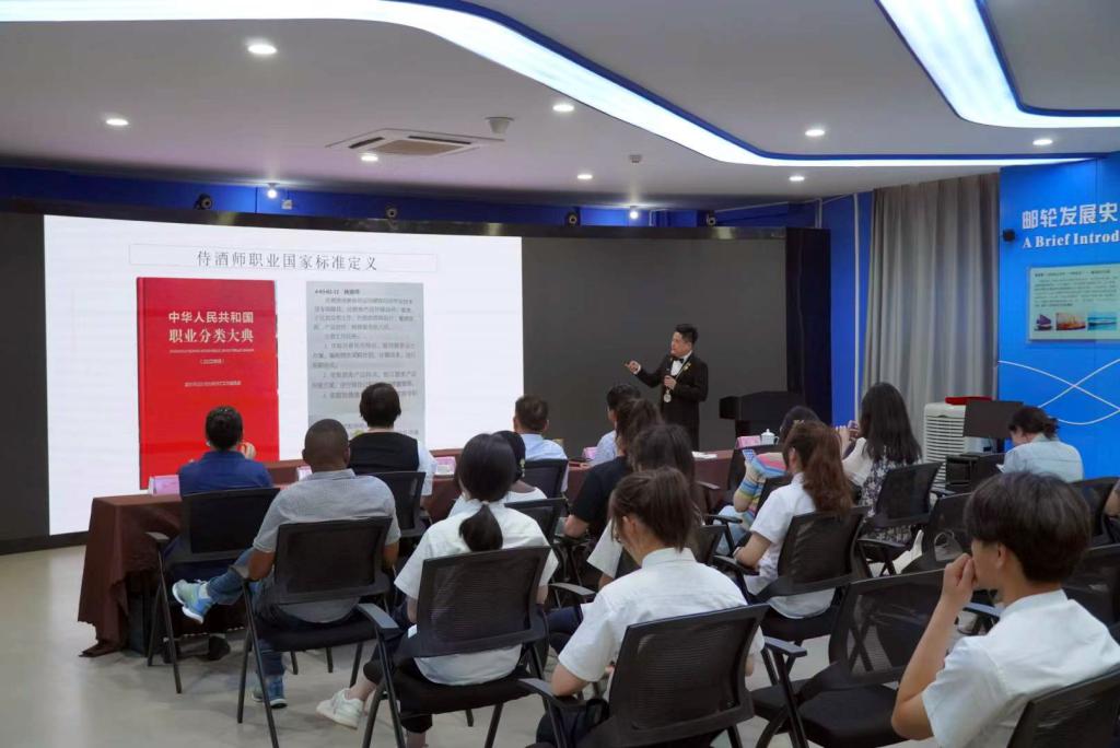 今后,海洋旅游学院将与侍文院开展《国家级一星品酒与侍酒课程》、《国家级二星营销与侍酒课程》、《中国白酒品鉴师课程》、《餐酒搭配师认证课程》等课程的培训考证工作;共同建立“海上侍酒师”课程体系并编写配套教材,建设“海上侍酒师”校内外实训基地;在国际邮轮乘务管理专业开展“海上侍酒师”人才订单培养工作,推荐优秀学员就业。(海洋旅游学院)