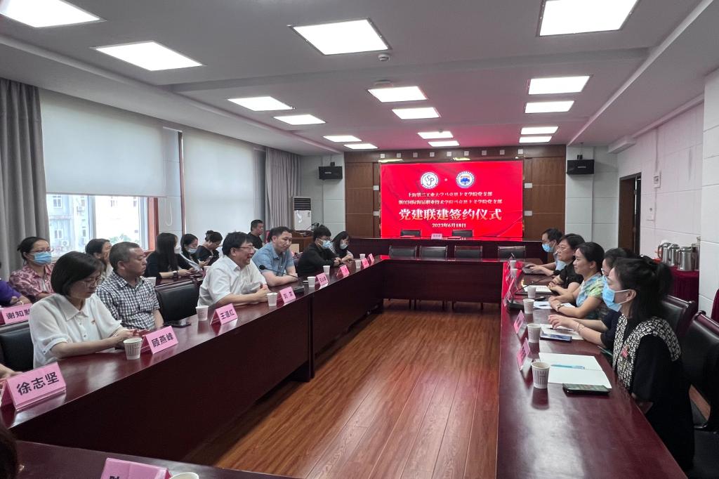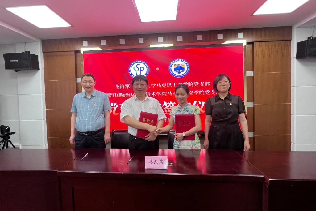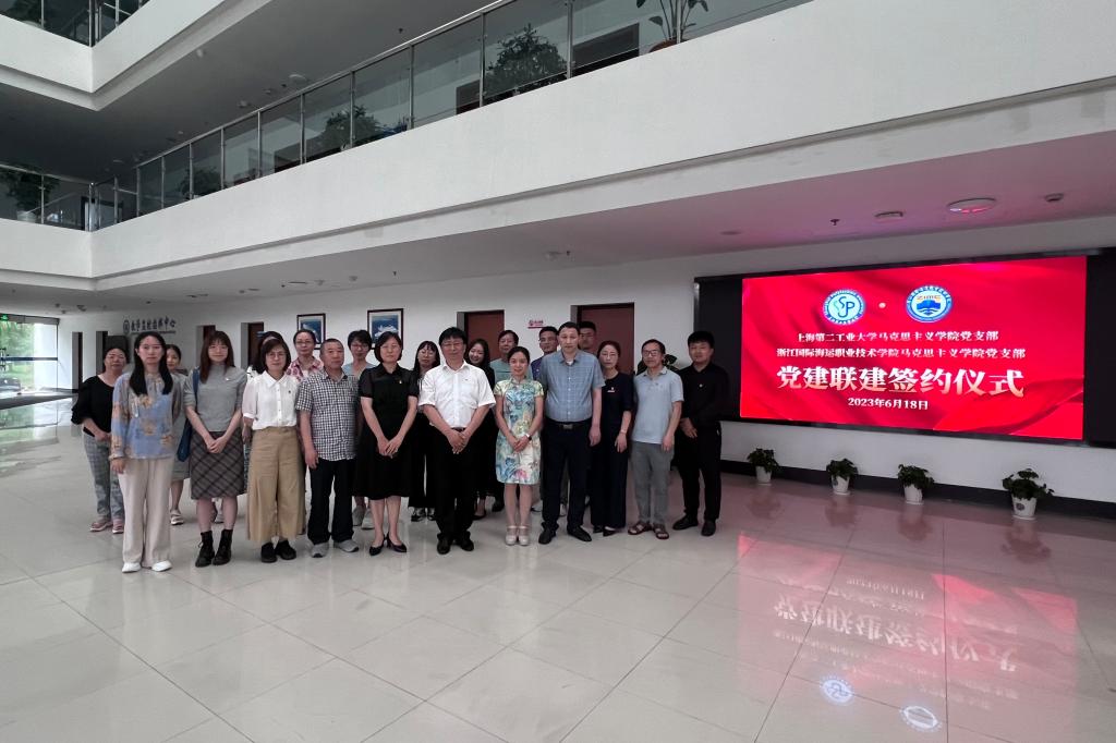 为进一步贯彻落实党的二十大精神,加强马克思主义学院和大思政课建设,拓展党建阵地,6月18日下午,上海第二工业大学马院党支部书记刘文教授、院长王永章教授等一行20人来校参观交流,与我校马院党支部座谈并签订党建联建协议。我校马院支委班子成员和“示范课堂”项目负责人和舟山开放大学终身教育处处长陈琪军等参加仪式。