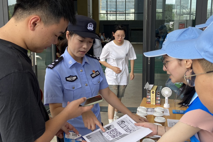随着开学日的到来,为抓住新生开学的有利契机,积极向广大新生宣传防诈常识、普及安全防范知识,9月13日,石油化工学院“平安守护联盟”社团联合岱山县公安局,在岱山校区新生报道现场组织开展了预防电信网络诈骗宣传活动。
