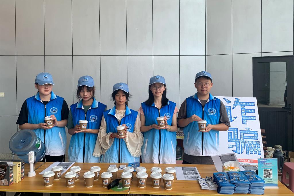 活动现场,除了悬挂横幅、摆放宣传展板、发放宣传材料、讲解反诈安全常识和典型案例外,社团还组织开展了朋友圈“点赞”送“反诈骗”咖啡活动。活动趣味性强,吸引了不少新生和家长踊跃参加。