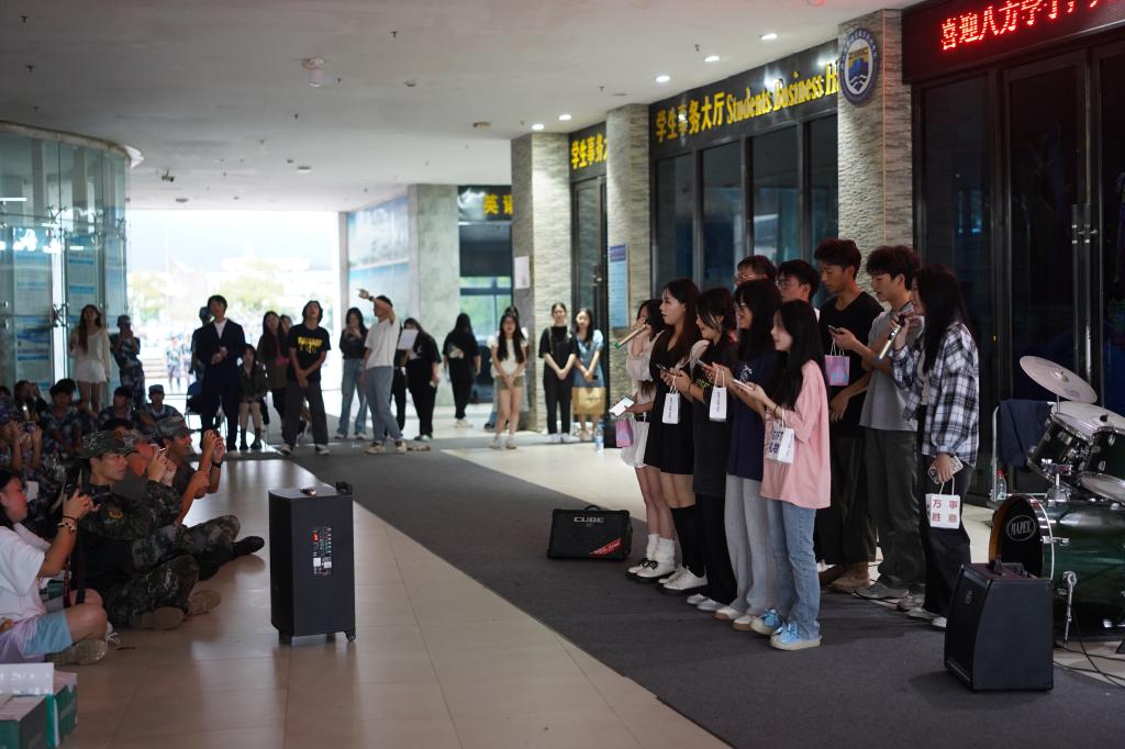 现代港口贸易学院团委学生会干部为新生们献上了慰问演出。精心准备的欢快歌曲、激情舞蹈和温馨的合唱表演,让现场的同学们爆发出一阵阵掌声和欢呼。