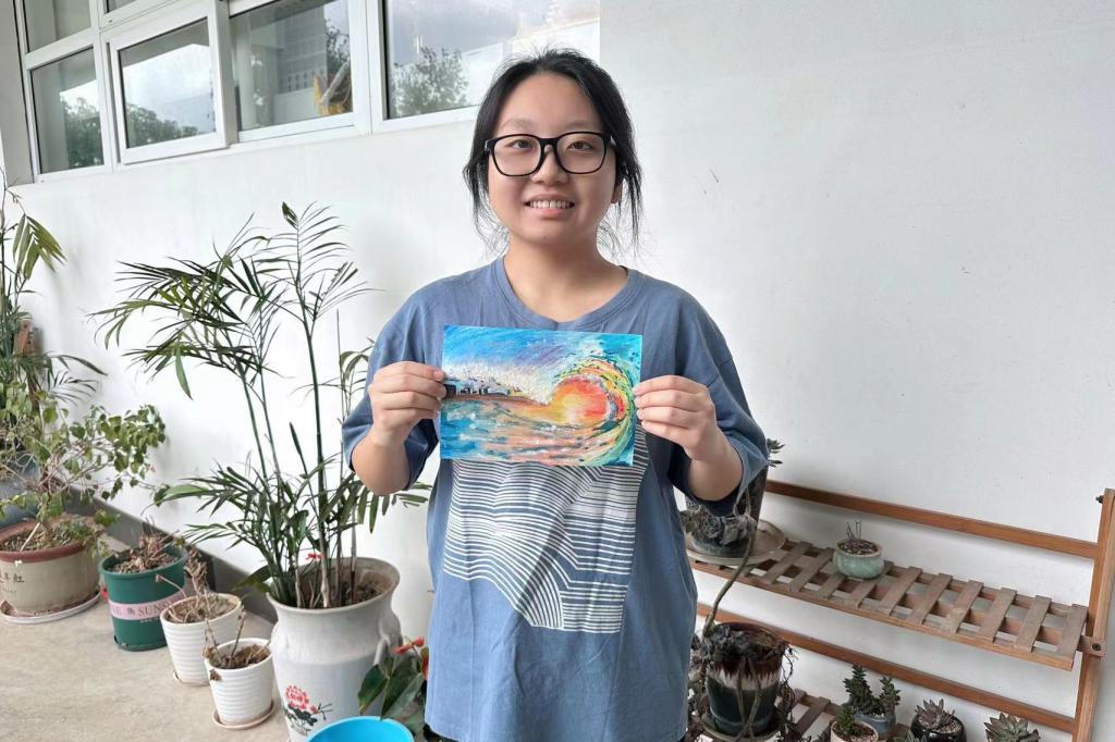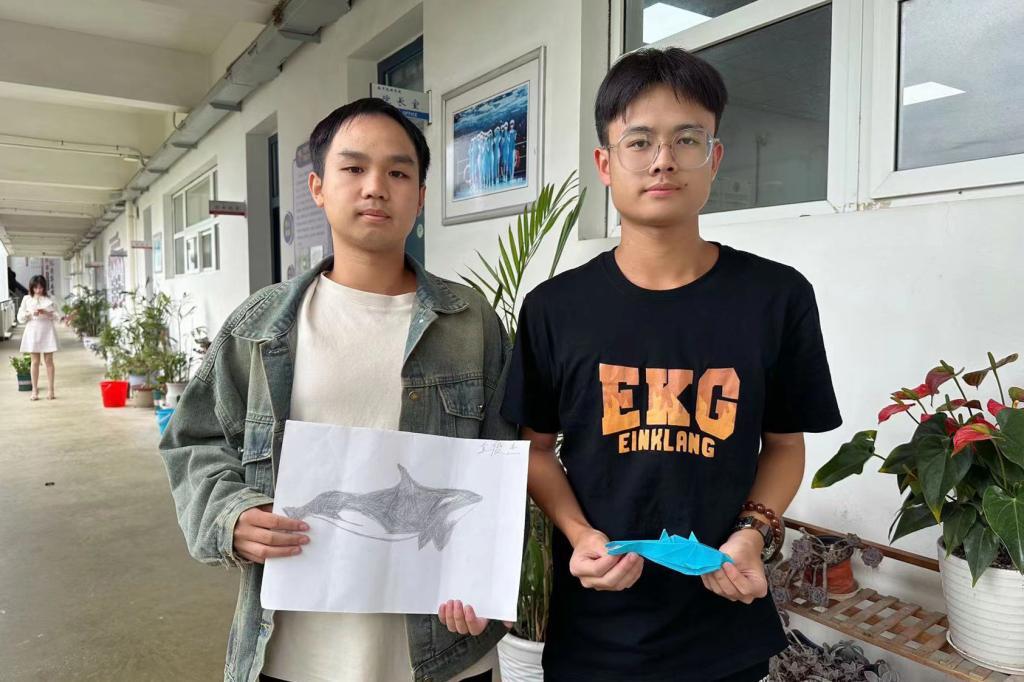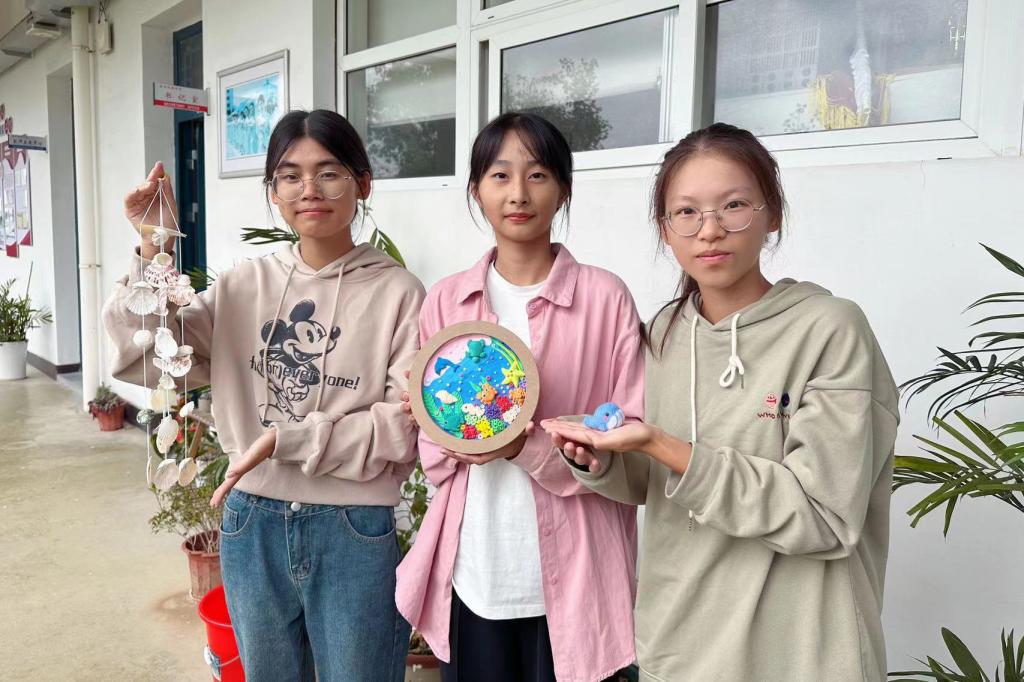 同学们利用各式各样的材料制作与蓝色海洋主题相关的作品,有一针一线编织出的海洋动物,有一笔一划描绘出的壮丽海景,有细心串联出的贝壳挂饰,有精心设计的折纸作品,还有手工制作的黏土装饰画。