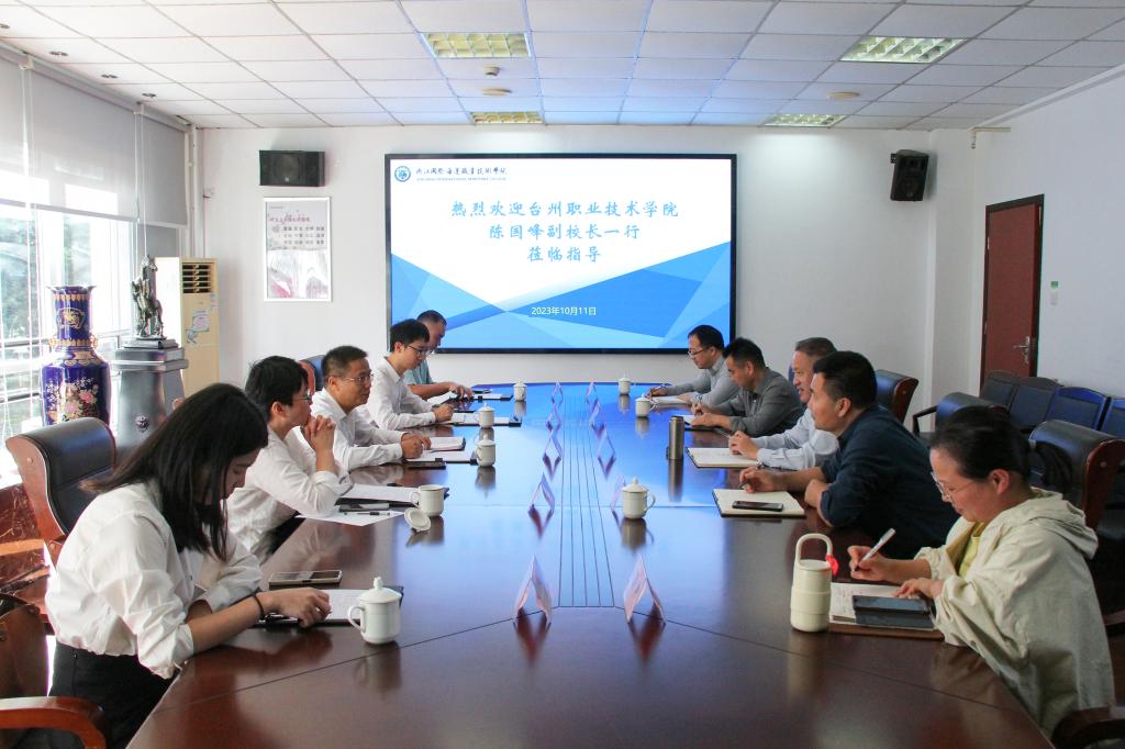 10月11日下午,台州职业技术学院副校长陈国峰一行来校调研交流,学校党委委员、副校长曹志斌陪同座谈。后勤产业处相关人员参加。