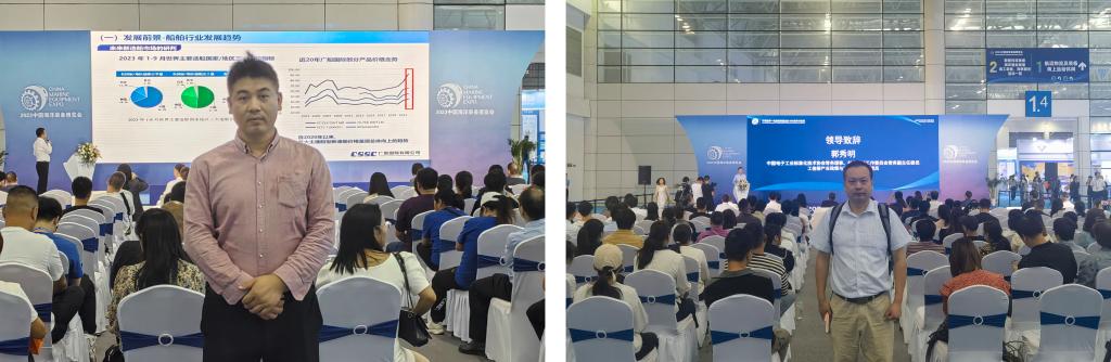 会议期间,两位老师参观了2023中国海洋装备博览会,参加了相关论坛专家讲座,并与会展上各专员就航海装备、新能源技术、海洋传感器与海洋观测技术、低碳环保技术等进行了深入交流,获益良多。
