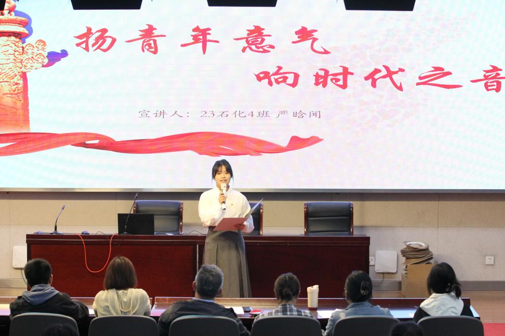 在飘扬的党旗下,青春的脚步铿锵有力,青春的初心矢志不渝。参赛选手们准备充分,在比赛中以自信的姿态,深刻地论述了青年学子在新时代的历史使命和责任担当。经过激烈的角逐,来自2023级石化1班严晗闻,2022级石化5班庞璐瑶,2023级应化2班胡志诚分别斩获前三名。2023级石化3班陈敏婕、2023级油储2班张诗语、林志豪获得优胜奖。