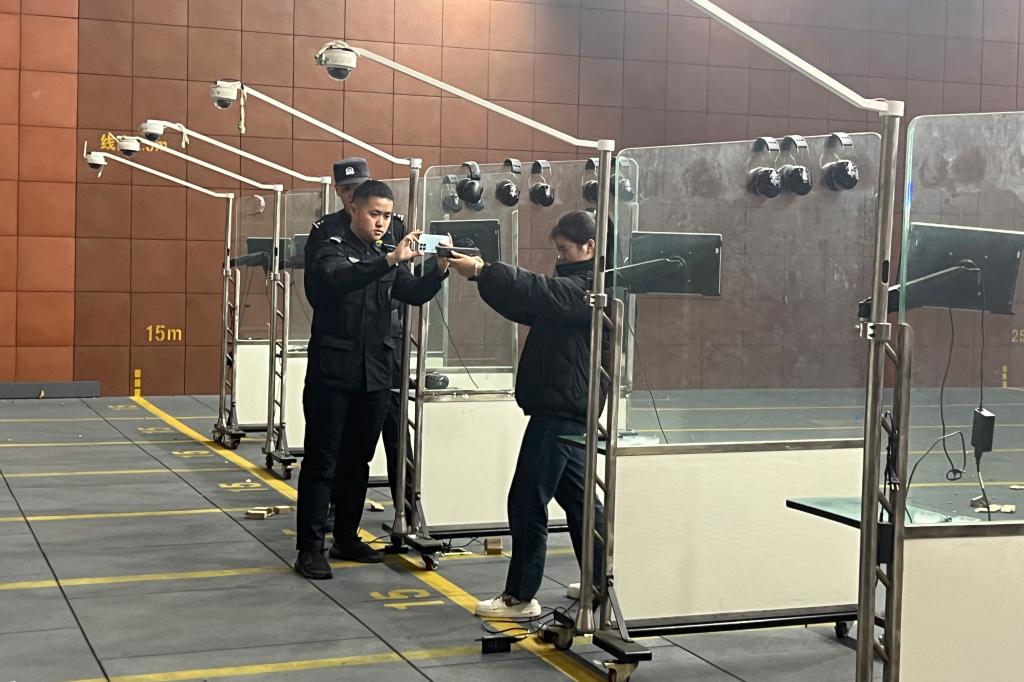 最让同学们感到兴奋的是参观训练靶场并亲身体验警用枪支的使用。验枪、拉动枪栓、持枪瞄准、击发,同学们带着紧张兴奋的心情有样学样,用心体会每个动作细节,有人举枪的手酸软了,有人无法保持稳定性,有人拉不动枪栓,有人因紧张而出现各种错误动作,感慨看似简单帅气的动作,也有很多学问和艰辛付出。