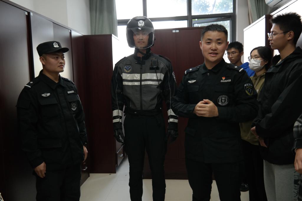 活动中,警察学校教导员向同学们详细介绍了各种警用装备、用途以及日常维稳安保技能,使同学们对警察日常工作有了直观的体会,更加深刻地理解了人民警察保卫人民的重要意义。