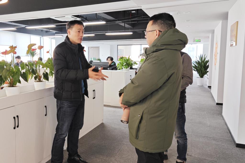 在园区企业现场,吴平波书记与企业负责人进行了交流,双方围绕着进一步深化校企合作和实习生在岗实习情况开展探讨。吴平波书记十分关心学生的实习生活情况,他详细询问了学生的实习工作内容、岗位培训以及适应程度等情况,表示实习实践对于个人的成长与发展起着至关重要的作用,希望同学们能踏踏实实完成实习的各类、各项任务,充分利用好企业实习平台,学以致用,不断锤炼自己的专业技能、培养自己的沟通能力,打磨自己吃苦耐劳的精神;同时叮嘱学生寒潮期间要注意保暖,以防感冒。