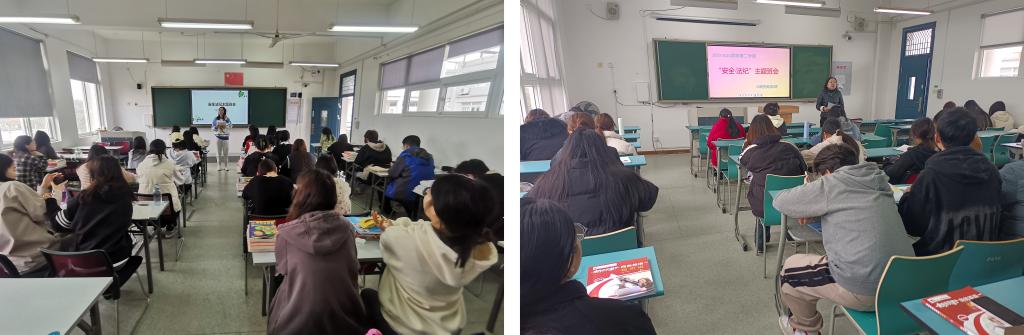 班会上,各班主任结合社会热点案例、校园典型安全事故,以及法律法规、学校安全管理规章制度等,重点围绕法律知识和安全常识、网络安全、校园交通安全、消防安全、心理健康教育,防范电信网络诈骗、春季传染病防治等内容对学生开展安全教育。同时,在班会课上介绍了大学生获取法律和安全知识的正确途径,列举出相关法律法规法典,建议学生利用课余时间学习《中华人民共和国宪法》、《中华人民共和国刑法》、《中华人民共和国治安管理处罚法》等法律法规以及学校的各项规章制度,不断增强法治观念,在知法的基础上学会守法,学会保护自己。(国际教育学院)